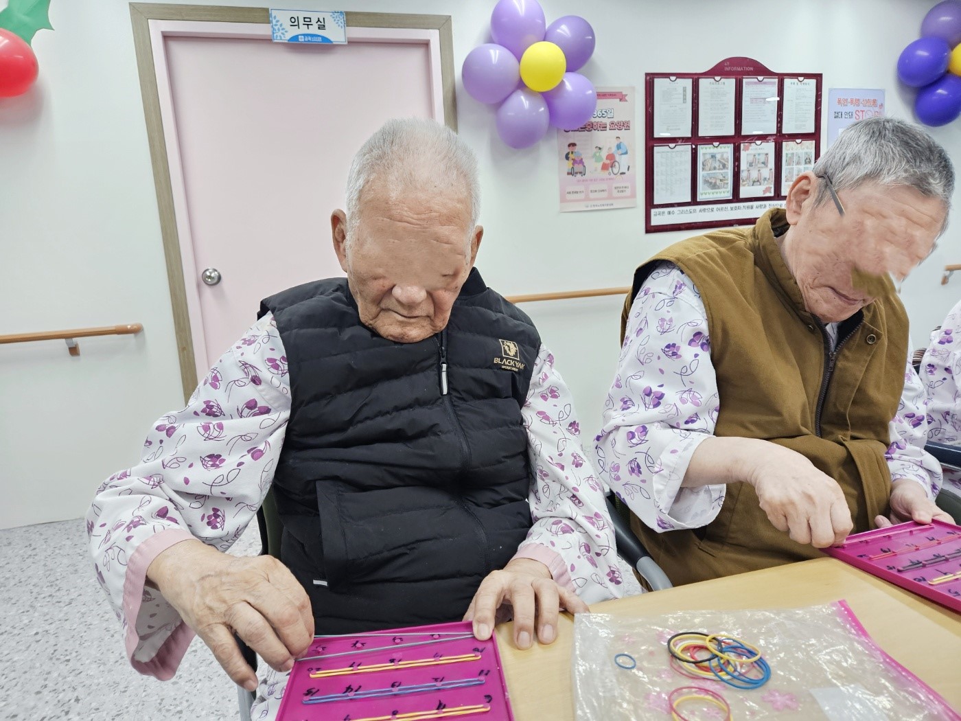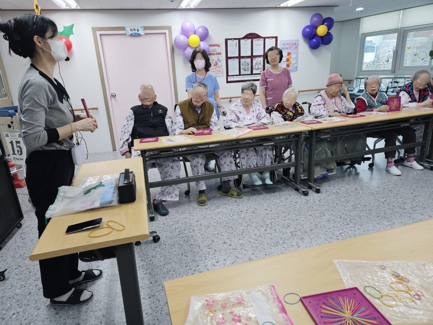 ♥ 외부강사님과 인지기능 프로그램 '고무줄 아트'를 진행했어요.