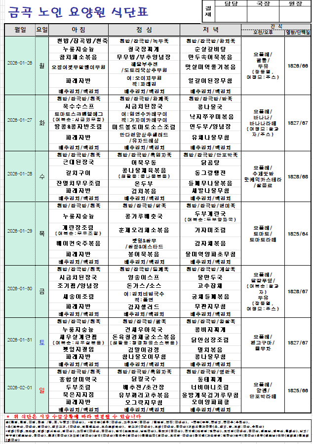 2026년 1월 26일~2월1일 주간식단입니다.
