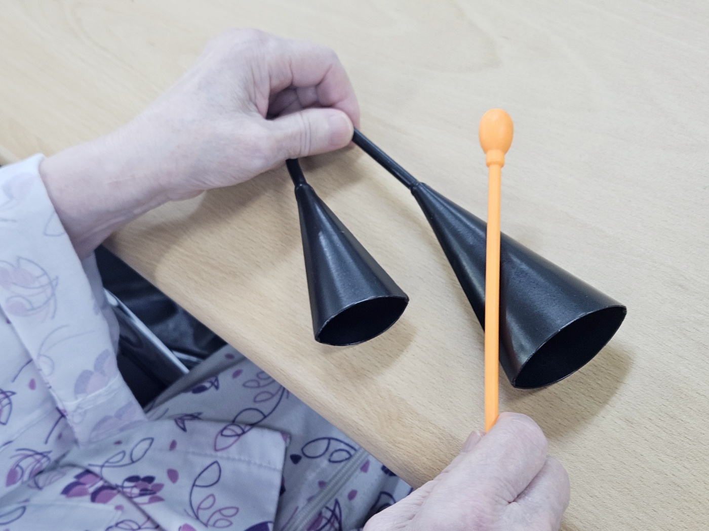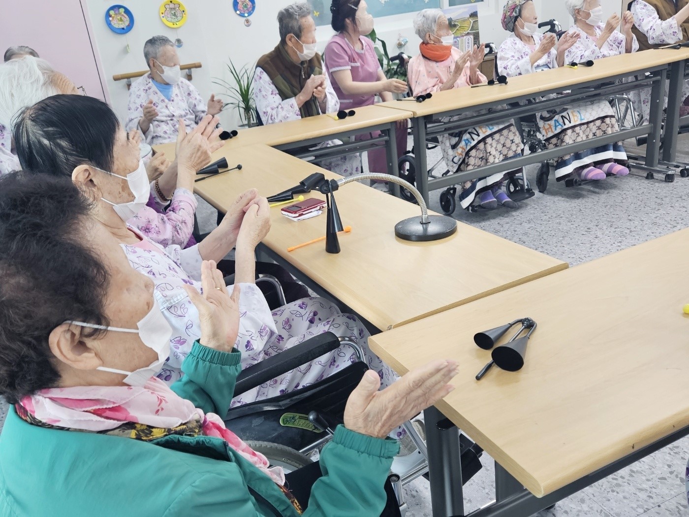 아고고벨 악기를 사용하여 음악활동 진행했습니다.