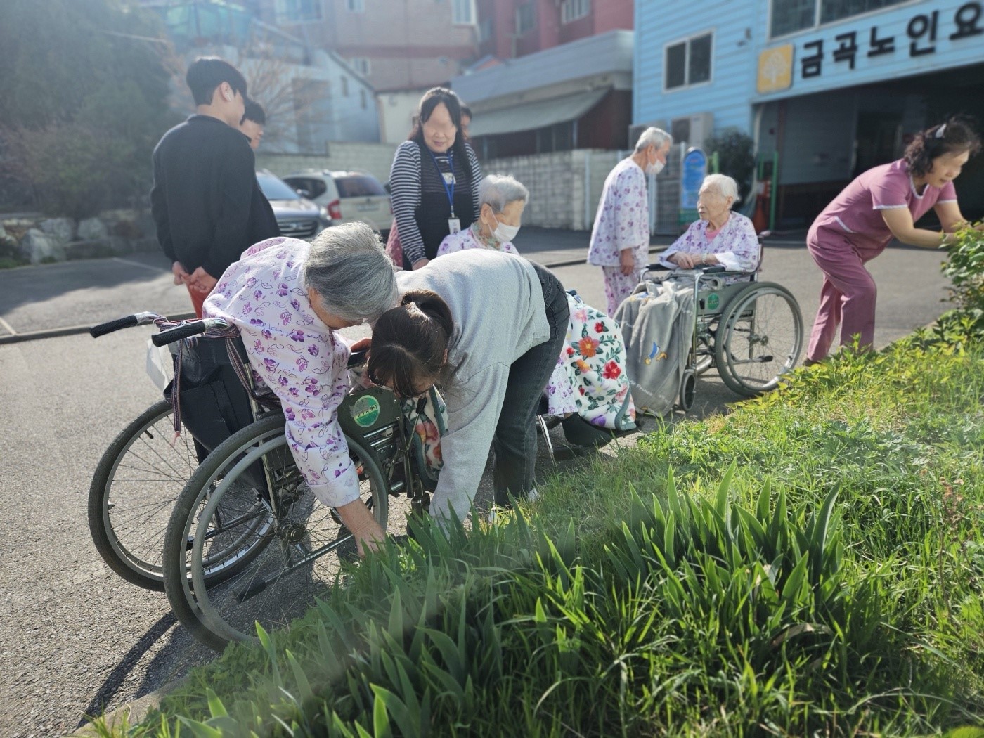 ♥ 어르신들과 요양원앞에 산책나왔어요~!